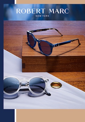 Robert Marc has revived the art of the handcrafted frame and subtly brands his eyewear with the trademarked Robert Marc hinge that is inspired by historical design and construction. This signature hinge adds distinction and luxury to each frame and unifies the collection. The Robert Marc Collection is crafted with high-quality materials such as zyl (Italian acetate) and titanium. He is known for layering contrasting and complementary colors and patterns to create depth and glamour in each frame. While each frame is unique, Robert Marc’s seasonal collections are themed, reflecting Robert’s artistic consciousness and imagination.